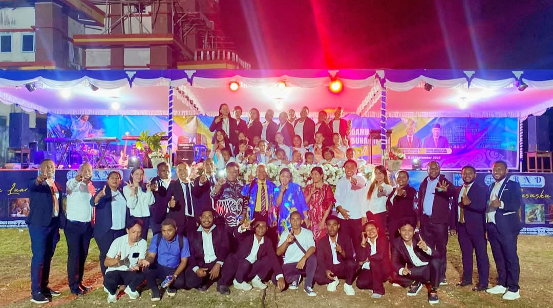 TERASKASUARI.COM, MANOKWARI - Kebaktian Kebangunan Rohani (KKR) dan Kesembuhan Ilahi oleh Pdt. Markus Nome di warnai dengan ibadah syukur relawan DOAMU yang digelar pada Selasa, (9/9/2025) di Lapangan Parkir Pusat Pendidikan Bara Api Penuai Amban Manokwari.