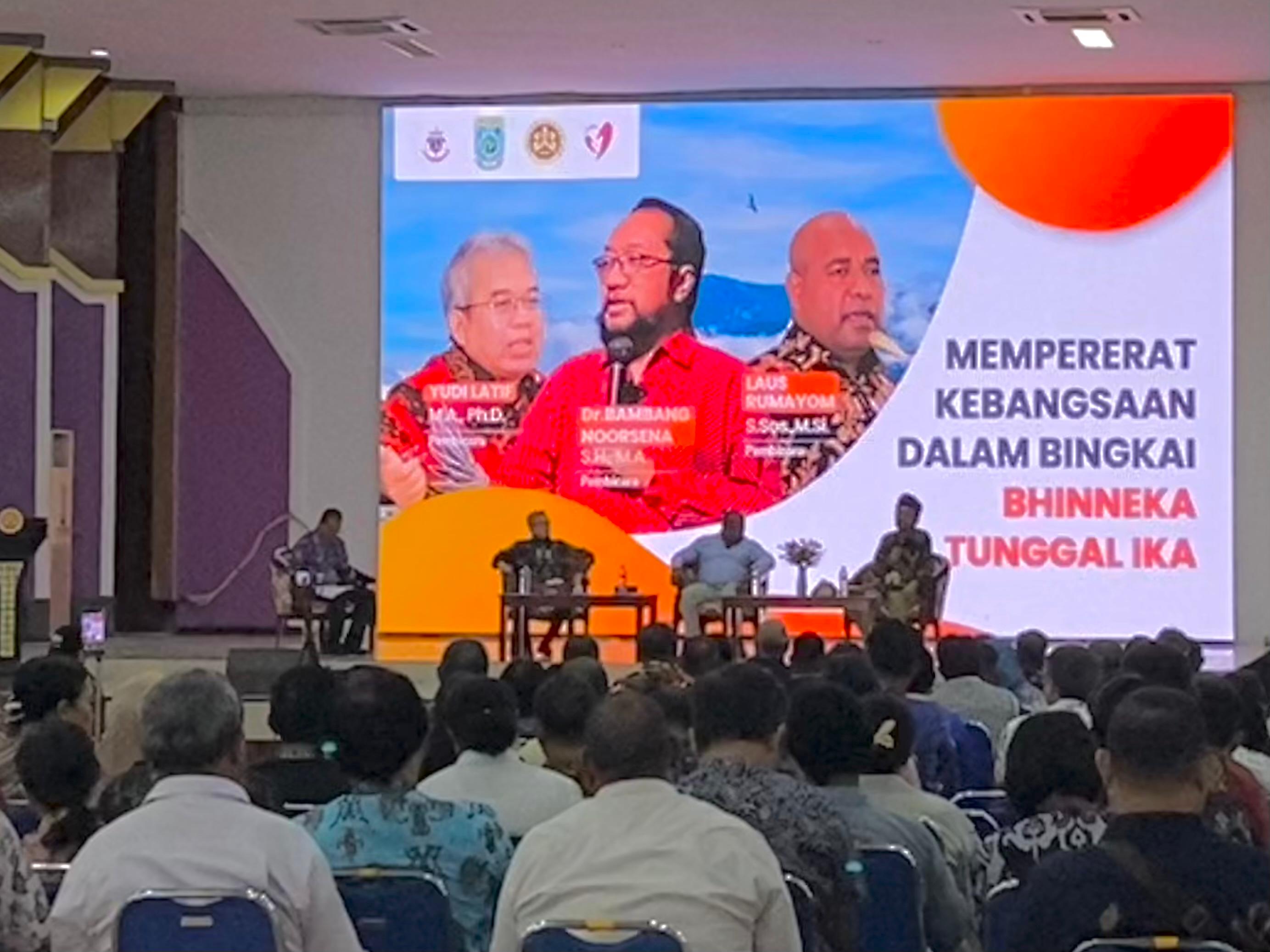 UNIPA menghadirkan pembicara intelektual yang berpengalaman dalam bidang wawasan kebangsaan dan memahami situasi kondisi wilayah Papua. Yudi Latif M.A., Ph. D. , Dr. Bambang Noorsena S.H., M.A. , Laus Rumayom S.Sos., M.Si.